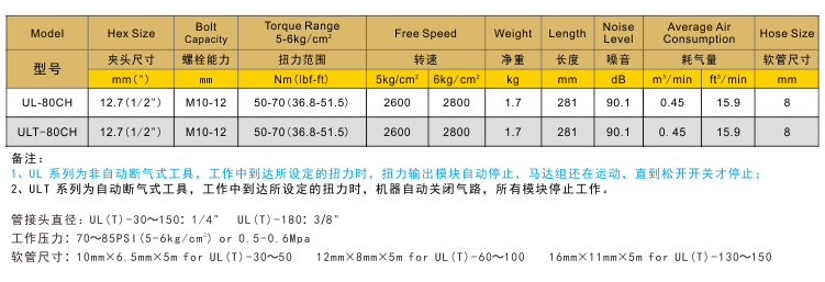 油壓脈沖定扭彎頭氣動扳手UL-80CH/ULT-80CH