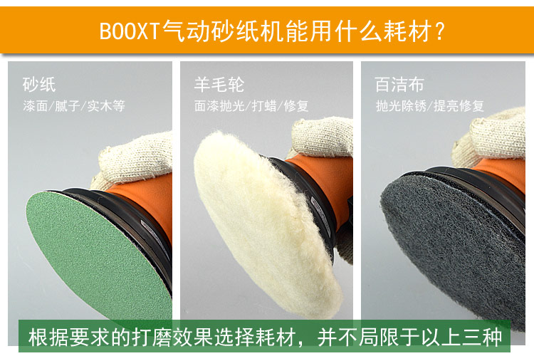 --粗磨偏心度幅度為9.5mm,扭力大,切削能力更大,適合重力打磨。工件一般幅面較大,要求打磨速度快,粗糙的打磨表面,如:玻璃鋼,UV,原子灰等材質比較硬的工件,所用砂紙規(guī)格120#以下;