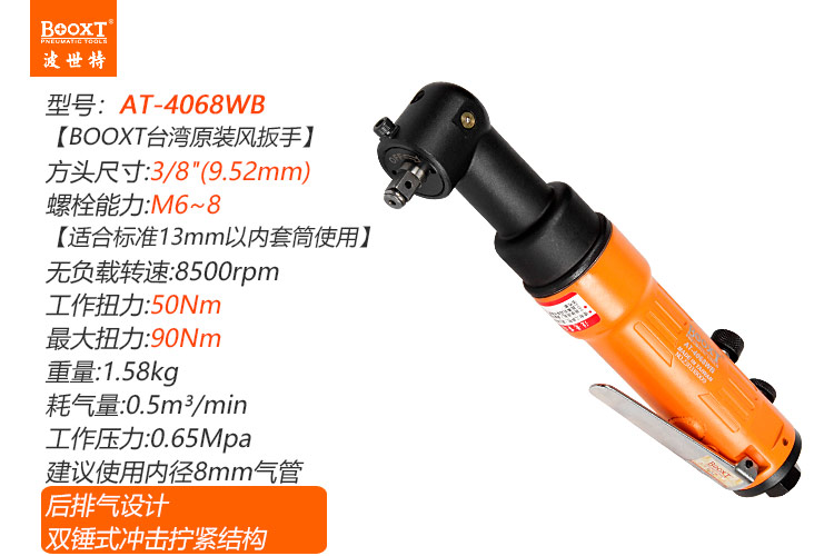 東莞市強(qiáng)勁五金工具有限公司提供臺(tái)灣BOOXT波世特品牌氣動(dòng)工具,90度氣動(dòng)扳手AT-4068WB廠家直銷,首件享特價(jià)。咨詢熱線:4008301980