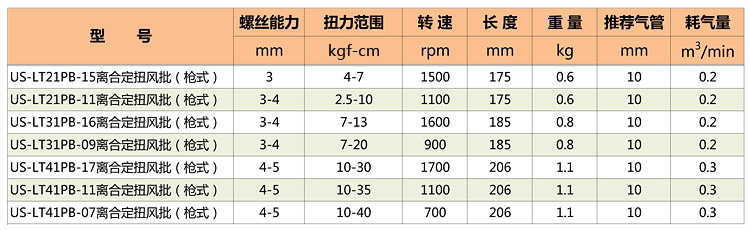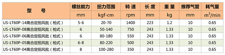 槍型定扭氣動螺絲刀特點: