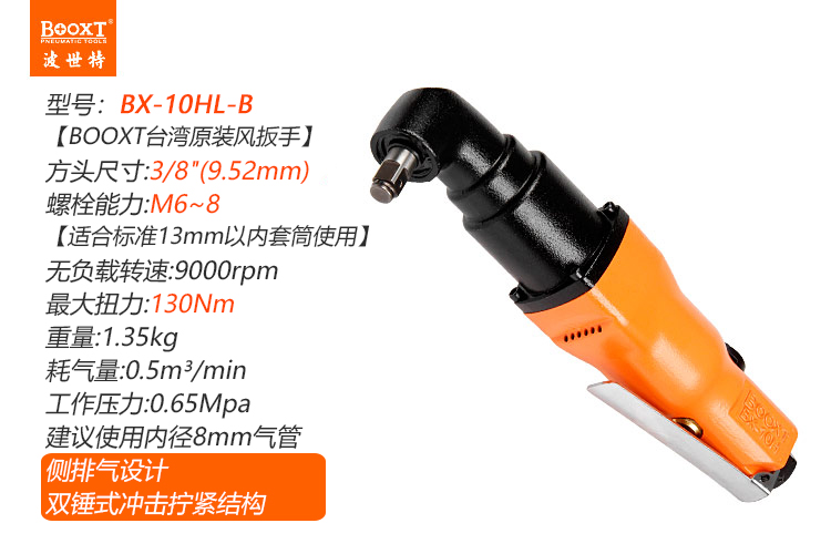 東莞市強勁五金工具有限公司提供臺灣BOOXT波世特品牌氣動工具,彎頭風動扳手BX-10HL-B廠家直銷,首件享特價。咨詢熱線:4008301980