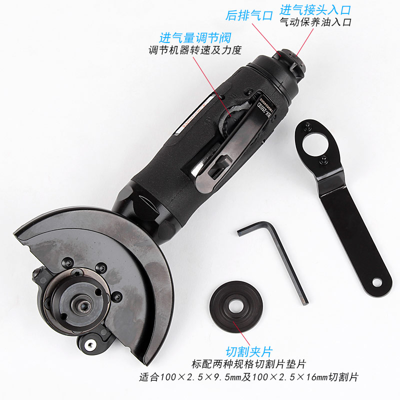 • 產(chǎn)品參數(shù): 砂輪尺寸:100×2.5×10mm,100×2.5×16mm; 砂輪孔徑:10和16mm; 空載轉(zhuǎn)速:13000rpm; 外形尺寸:50×240mm; 工具重量:1.08kg; 馬達功率:1HP; 耗氣量:0.5立方米/分鐘; 使用工作氣壓:0.65Mpa; 推薦使用內(nèi)徑8mm氣管; 平時使用應(yīng)多加氣動油保養(yǎng)