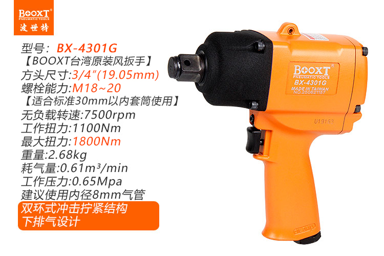 東莞市強(qiáng)勁五金工具有限公司提供臺灣BOOXT波世特品牌氣動工具,氣動沖擊扳手BX-4301G廠家直銷,首件享特價(jià)。咨詢熱線:4008301980