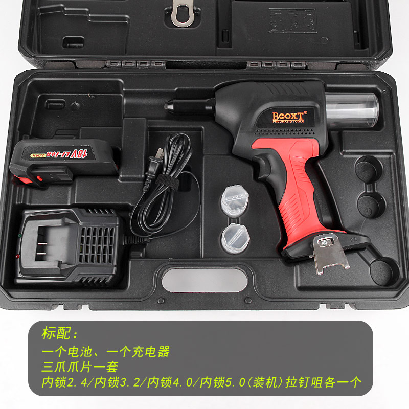 • 產(chǎn)品參數(shù): 拉釘規(guī)格:2.4-5.0mm 【所有材質(zhì)抽芯鉚釘】 鋰電電壓:18V 行 程:21mm 最大拉力:12000N 循環(huán)時間:2S 重 量:2.01kg。
