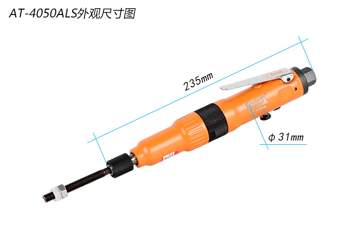 • 產(chǎn)品參數(shù): 螺絲規(guī)格:M3-8 夾頭尺寸:1/4" 空載轉(zhuǎn)速:1700rpm 最大扭力:3Nm 全 長:235mm 重 量:0.61kg 耗 氣 量:5cfm
