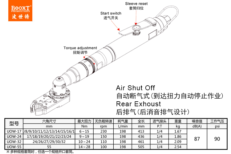 東莞市強(qiáng)勁五金工具有限公司提供臺(tái)灣BOOXT波世特品牌氣動(dòng)工具,氣動(dòng)開口棘輪扳手UOW-24廠家直銷,首件享特價(jià)。咨詢熱線:4008301980