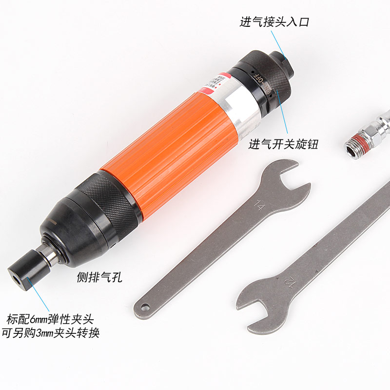 • 產(chǎn)品參數(shù): 夾頭能力:M3,6 (標配M6) 馬達功率:0.45HP 空載轉速:18000rpm 工具能力:砂輪磨頭M32,旋轉銼刀M22 耗 氣 量:0.45m3/min 全 長:214mm 重 量 : 0.88kg 【旋鈕開關/超高同心度】