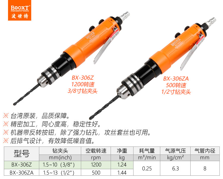 東莞市強(qiáng)勁五金工具有限公司提供臺(tái)灣BOOXT波世特品牌氣動(dòng)工具,直式氣動(dòng)鉆BX-306ZA廠家直銷,首件享特價(jià)。咨詢熱線:4008301980