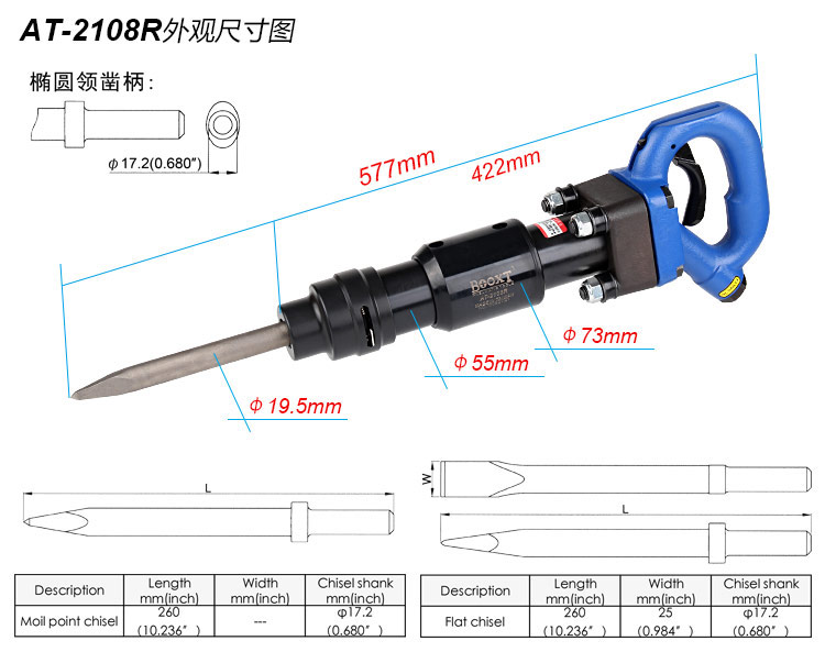 • 產(chǎn)品用途: 配合不同規(guī)格的鏟頭或鎬尖,去除各種附著物如涂料、鐵銹、焊漬、 鑄件剝離、清除水泥、涵洞巖石破碎等作業(yè)。 【工業(yè)型】