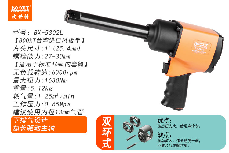 東莞市強(qiáng)勁五金工具有限公司提供臺灣BOOXT波世特品牌氣動工具,加長軸氣動扳手BX-5302L廠家直銷,首件享特價(jià)。咨詢熱線:4008301980