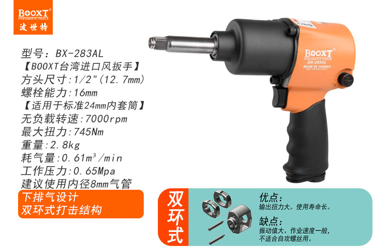 東莞市強(qiáng)勁五金工具有限公司提供臺灣BOOXT波世特品牌氣動工具,加長軸氣動扳手BX-283AL廠家直銷,首件享特價(jià)。咨詢熱線:4008301980