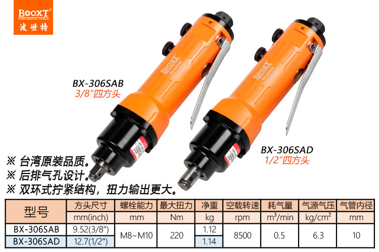 東莞市強(qiáng)勁五金工具有限公司提供臺(tái)灣BOOXT波世特品牌氣動(dòng)工具,直柄小風(fēng)炮BX-306SAD廠家直銷,首件享特價(jià)。咨詢熱線:4008301980