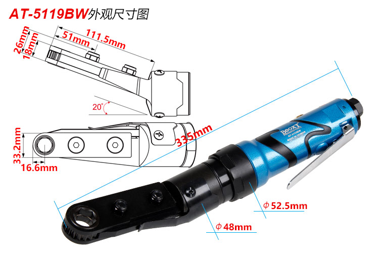 中空氣動扳手特點:(重力壓鑄外殼,強度更高不變形,提高耐用度)