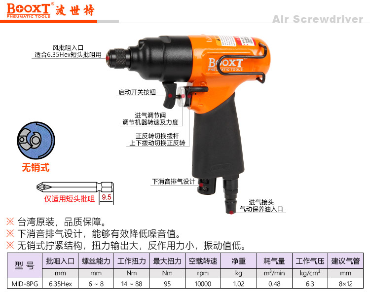 東莞市強勁五金工具有限公司提供臺灣BOOXT波世特品牌氣動工具,槍型風批MID-8PG廠家直銷,首件享特價。咨詢熱線:4008301980