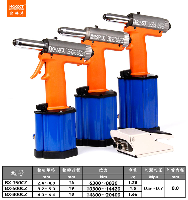 東莞市強勁五金工具有限公司提供臺灣BOOXT波世特品牌氣動工具,氣動拉釘槍BX-800CZ廠家直銷,首件享特價。咨詢熱線:4008301980