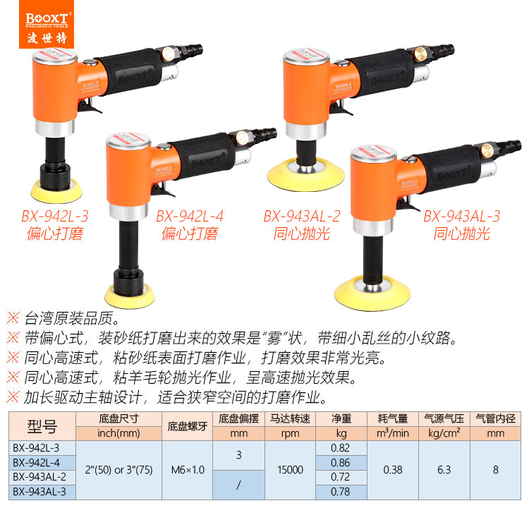 東莞強勁五金工具有限公司提供臺灣BOOXT波世特氣動工具,加長氣動打磨機BX-943AL-3廠家直銷,首件享特價。咨詢熱線:4008301980
