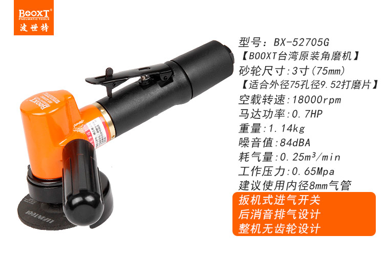 東莞市強勁五金工具有限公司提供臺灣BOOXT波世特品牌氣動工具,3寸角向砂輪機BX-52705G廠家直銷,首件享特價。咨詢熱線:4008301980