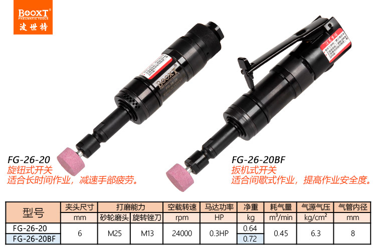 東莞市強(qiáng)勁五金工具有限公司提供臺(tái)灣BOOXT波世特品牌氣動(dòng)工具,風(fēng)磨機(jī)FG-26-20廠(chǎng)家直銷(xiāo),首件享特價(jià)。咨詢(xún)熱線(xiàn):4008301980
