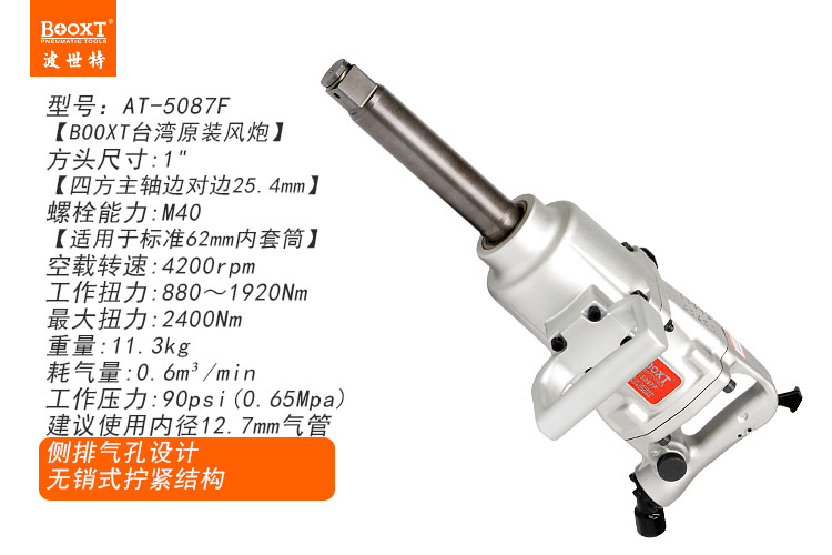 東莞市強勁五金工具有限公司提供臺灣BOOXT波世特品牌氣動工具,無銷式風炮AT-5087F廠家直銷,首件享特價。咨詢熱線:4008301980