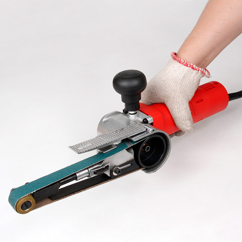 1)使用不同砂粒的砂帶或尼龍拉絲帶,對(duì)狹小、復(fù)雜、焊縫、點(diǎn)焊、小角度、死角處凹凸面等普通打磨機(jī)無法進(jìn)入的部位進(jìn)行研磨、打磨、拋光、拉絲、倒角、去毛刺、涂膜作業(yè)等表面處理作業(yè)。