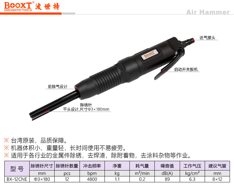 東莞市強(qiáng)勁五金工具提供臺(tái)灣BOOXT波世特品牌,氣動(dòng)除銹機(jī)BX-12CNE廠家直銷,首件享特價(jià)。咨詢熱線:4008301980