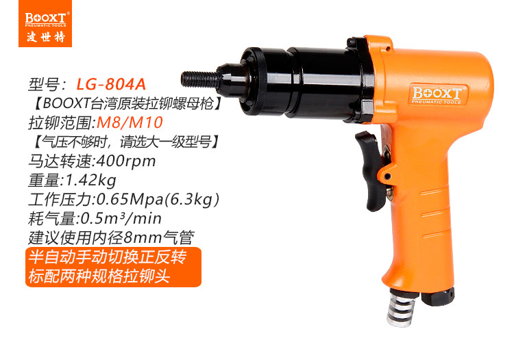 東莞市強(qiáng)勁五金工具有限公司提供臺(tái)灣BOOXT波世特品牌氣動(dòng)工具,氣動(dòng)拉螺帽槍LG-804A廠家直銷,首件享特價(jià)。咨詢熱線:4008301980