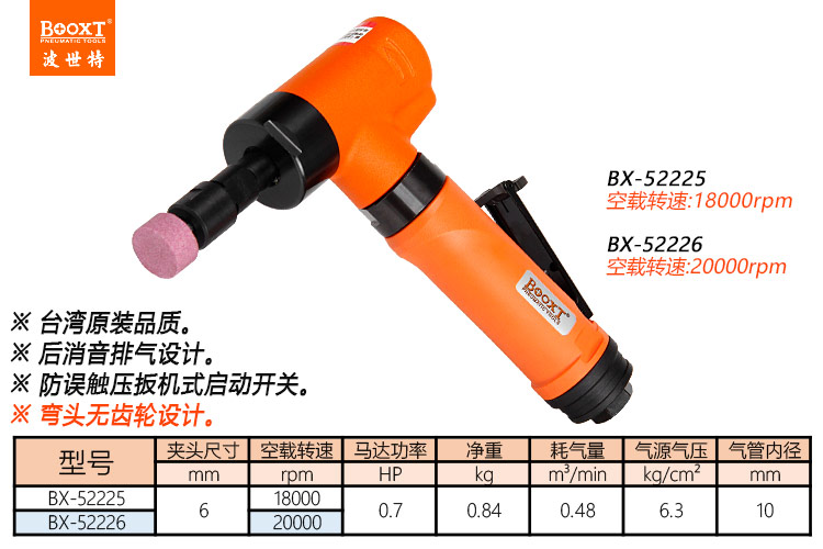 東莞市強勁五金工具有限公司提供臺灣BOOXT波世特品牌氣動工具,彎頭氣動打磨機BX-52226廠家直銷,首件享特價。咨詢熱線:4008301980