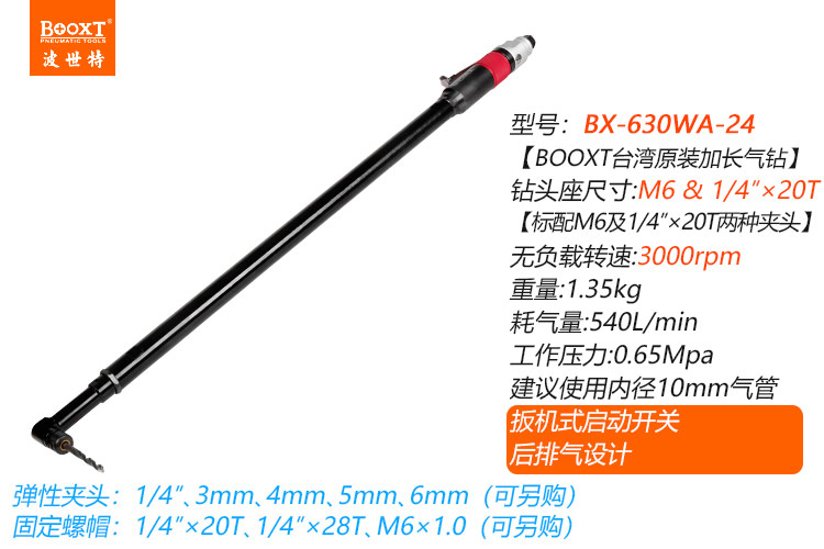 東莞市強勁五金工具有限公司提供臺灣BOOXT波世特品牌氣動工具,特加長彎頭氣動鉆BX-630WA-24廠家直銷,首件享特價。咨詢熱線:4008301980