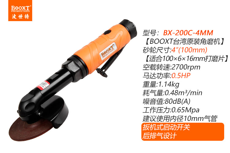 東莞市強勁五金工具有限公司提供臺灣BOOXT波世特品牌氣動工具,低速氣動角磨機BX-200C-4MM廠家直銷,首件享特價。咨詢熱線:4008301980