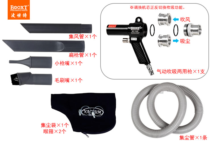 東莞市強勁五金工具有限公司提供臺灣BOOXT波世特品牌氣動工具,氣動吹塵吸塵兩用槍BX-720K廠家直銷,臺灣制造,首件享特價。咨詢熱線:4008301980