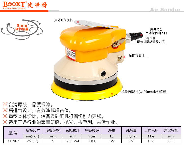 東莞強(qiáng)勁五金工具有限公司提供臺(tái)灣BOOXT波世特氣動(dòng)工具,重型氣動(dòng)砂紙機(jī)AT-7027廠家直銷,首件享特價(jià)。咨詢熱線:4008301980