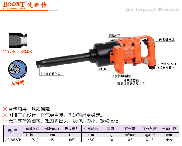 東莞市強勁五金工具有限公司提供臺灣BOOXT波世特品牌氣動工具,無銷式氣動風(fēng)炮AT-5087GP廠家直銷,首件享特價。咨詢熱線:4008301980