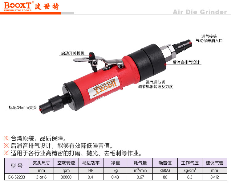 東莞市強勁五金工具有限公司提供臺灣BOOXT波世特品牌氣動工具,氣動風磨機BX-52233廠家直銷,首件享特價。咨詢熱線:4008301980