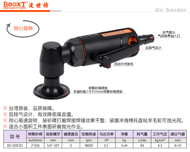 東莞強(qiáng)勁五金工具有限公司提供臺灣BOOXT波世特氣動工具,氣動砂碟打磨機(jī)BX-120ESD廠家直銷,首件享特價。咨詢熱線:4008301980