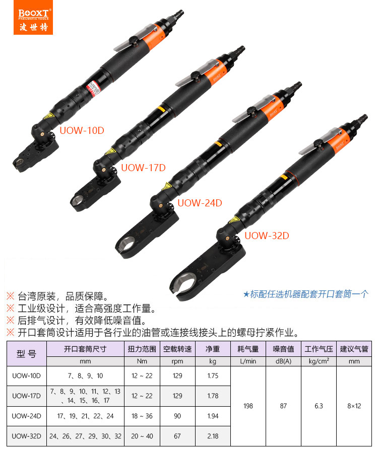 東莞市強(qiáng)勁五金工具有限公司提供臺灣BOOXT波世特品牌氣動工具,大扭力開口氣動扳手UOW-10D廠家直銷,首件享特價。咨詢熱線:4008301980