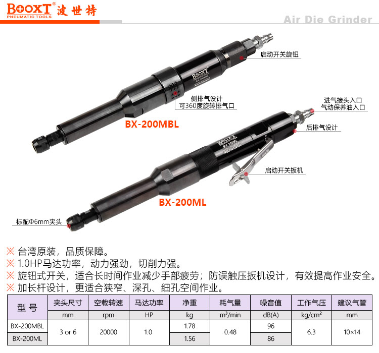 東莞市強勁五金工具有限公司提供臺灣BOOXT波世特品牌氣動工具,加長氣動直磨機BX-200MBL廠家直銷,首件享特價。咨詢熱線:4008301980
