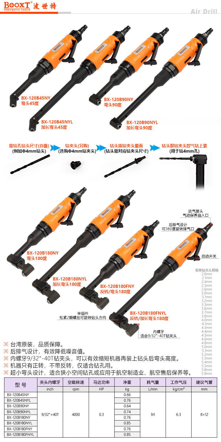 東莞市強勁五金工具有限公司提供臺灣BOOXT波世特品牌氣動工具,加長偏角氣動鉆BX-120B180NYL廠家直銷,首件享特價。咨詢熱線:4008301980