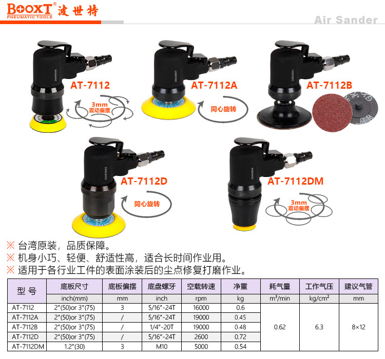 東莞強(qiáng)勁五金工具有限公司提供臺(tái)灣BOOXT波世特氣動(dòng)工具,迷你氣動(dòng)砂碟打磨機(jī)AT-7112B廠家直銷,首件享特價(jià)。咨詢熱線:4008301980