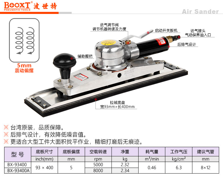 東莞強勁五金工具有限公司提供臺灣BOOXT波世特氣動工具,長方形氣動打磨機BX-93400A廠家直銷,首件享特價。咨詢熱線:4008301980