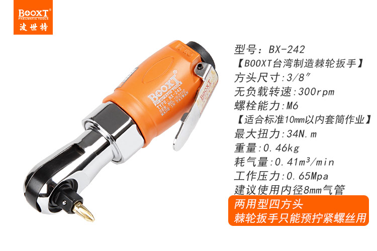 東莞市強勁五金工具有限公司提供臺灣BOOXT波世特品牌氣動工具,氣動棘輪扳手BX-242廠家直銷,首件享特價。咨詢熱線:4008301980