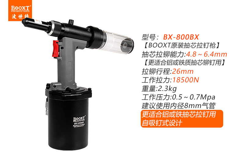 東莞市強(qiáng)勁五金工具有限公司提供臺灣BOOXT波世特品牌氣動工具,自吸式氣動拉釘槍BX-800BX廠家直銷,首件享特價。咨詢熱線:4008301980