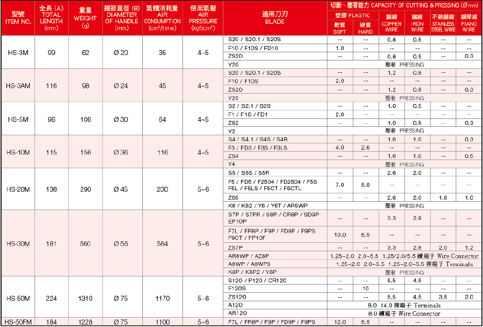 HS-5M機(jī)身更多刀頭選擇請(qǐng)參考下表: