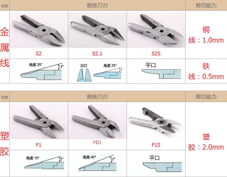 2.注意材質(zhì):材質(zhì)對(duì)選配刀刃非常重要,例如客戶要剪的銅鐵、材質(zhì)有鍍鈦、鍍烙、塑料材質(zhì)、加纖維超過20% 時(shí),一般刀刃不是剪不斷,就是使用壽命大大減少,塑料還容易在剪斷過程中碎裂。在這情形S刀刃應(yīng)選擇Z刀,塑料則建議使用電熱剪。