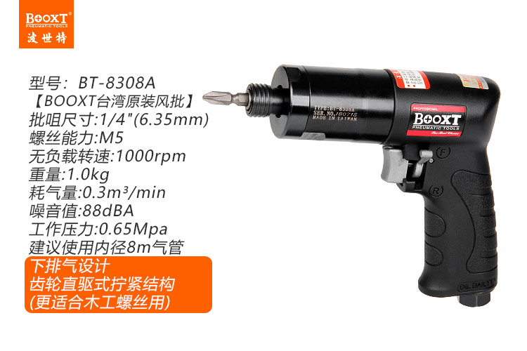 東莞市強勁五金工具有限公司提供臺灣BOOXT波世特品牌氣動工具,齒輪式氣動螺絲刀BT-8308A廠家直銷,首件享特價。咨詢熱線:4008301980