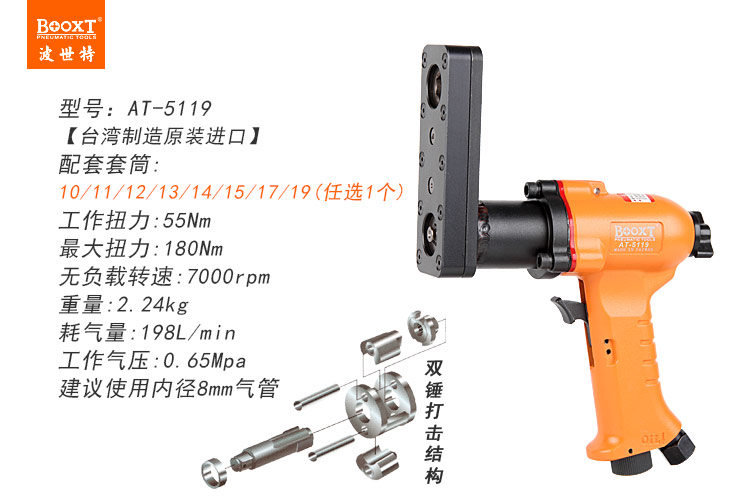 東莞市強(qiáng)勁五金工具有限公司提供臺(tái)灣BOOXT波世特品牌氣動(dòng)工具,氣動(dòng)穿孔棘輪扳手AT-5119廠家直銷,首件享特價(jià)。咨詢熱線:4008301980